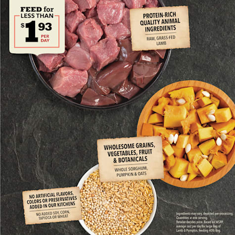 Acana singles grass fed lamb is loaded with 50 quality lamb ingredients in wholeprey ratios of meat organs and cartilage complemented with delicious whole red delicious apples providing your dog with the protein and nutrients they need in order to stay happy healthy and strong.